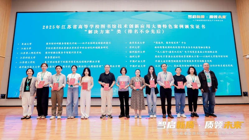 10月16日,江苏省高校图书情报工作委员会现代技术专业委员会主办的技术年会在南京举行。会议围绕“智启新质·质领未来:人工智能重塑图书馆生产力创新生态”这一主题进行深入探索,并对2025年江苏省高等学校图书馆技术创新应用大赛中获奖案例给予表彰。我馆申报的“图书馆微信服务号智能问答系统”荣获特色案例奖。