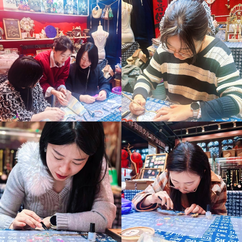 当天下午,党员们准时前往“老门东非遗传习馆”,开启非遗体验之旅。在老师的耐心指导下,党员们亲手参与简单非遗作品的制作,从工具使用到技艺手法,一步步感受传统工艺的精妙。体验过程中,大家围绕非遗技艺的历史渊源、传承现状及面临的挑战与老师深入交流,详细了解每项工艺背后的文化故事与匠人精神。指尖触碰间,党员们深刻体会到中华优秀传统文化的博大精深,进一步坚定了传承和保护非遗文化的决心。