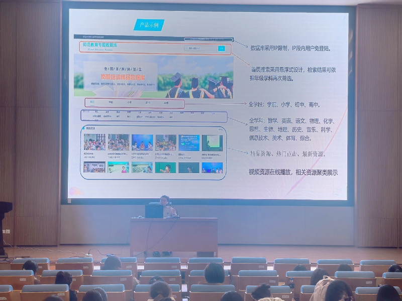 讲座现场,张老师首先全面梳理了师范教育专题数据库的核心资源类型,帮助学生建立对数据库资源体系的整体认知。随后,通过案例演示与步骤拆解,详细介绍了关键词检索、分类筛选、精准定位等实用检索方法,深入浅出地讲解了如何根据教学实践、课程论文、职业备考等不同场景,高效挖掘数据库中的优质资源。
