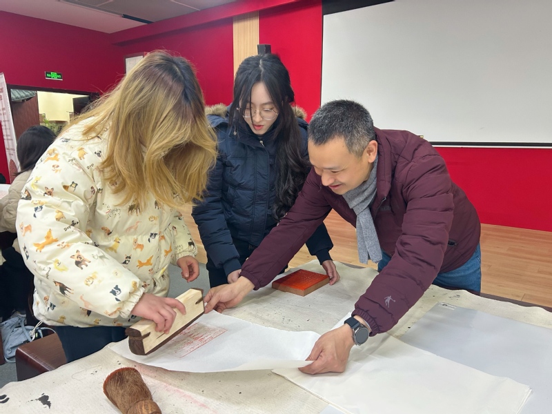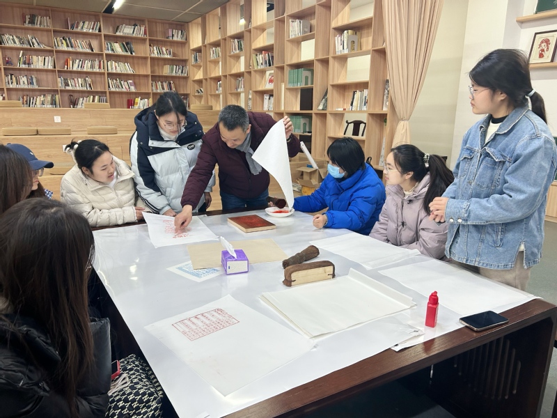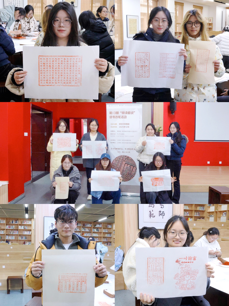 学生沉浸式体验了印刷雕版,深刻体会到雕版印刷技艺的精巧与不易,更在实践中领悟到这项古老技艺何以成为传承人类文明、弘扬优秀文化的重要载体。图书馆将继续深耕“悦读者说”读书沙龙这一文化品牌,引导师生在阅读中触摸技艺的温度,在实践与思考中探寻传统的深度。